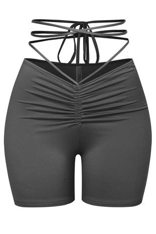 Experience ultimate comfort and style with the Euphoria Shorts. The front ruched detail with tie offers a flattering fit and the soft, stretchy material ensures maximum comfort. These shorts are the perfect addition to any wardrobe and will keep you feeling comfortable and confident all day long.