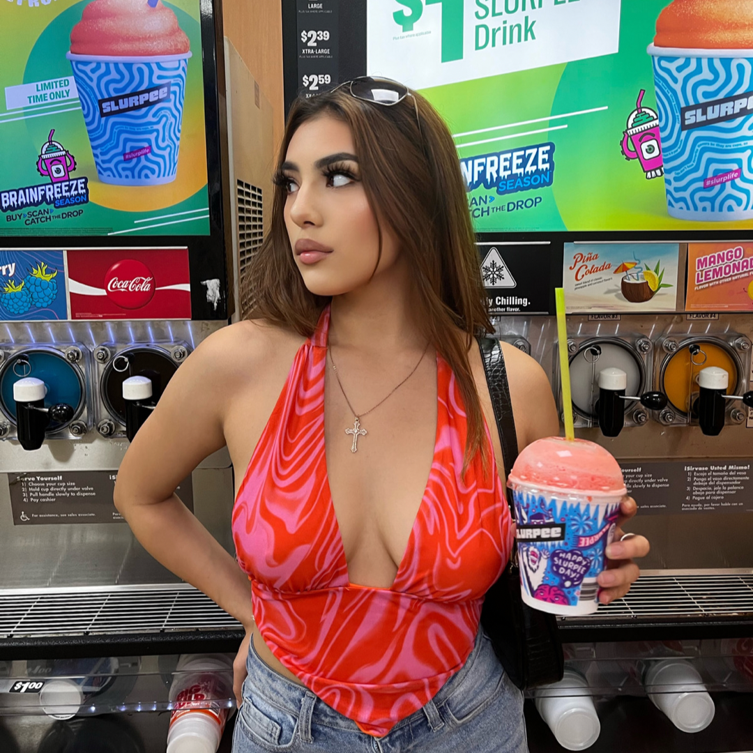 Indulge in lavish style with our Halter Crop Top. Adorned with a captivating Swirl print design, the back features a Wrap tie for your ultimate comfort. Crafted with incredible stretch and double layered for an exquisite finish. Model is wearing a size small